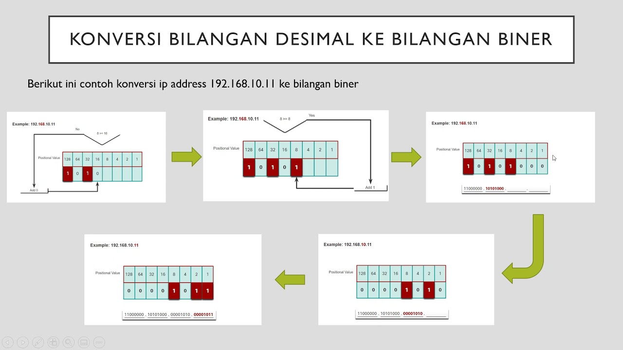 Desimal Ke Biner. Konversi desimal ke biner Untuk mengubah desimal ke biner juga sangat sederhana Anda hanya membagi nilai desimal dengan 2 dan kemudian menuliskan sisanya ulangi proses ini sampai Anda tidak bisa membagi dengan 2 lagi misalnya mari kita mengambil nilai desimal 157. Konversi bentuk biner menjadi bentuk desimal dapat dilakukan dengan menjabarkan bentuk ke dalam bentuk perpangkatan bilangan dua.